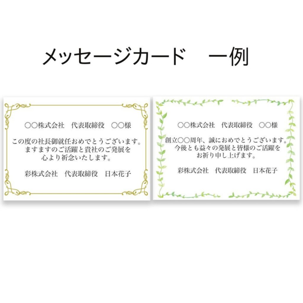 メッセージカードは、文字の容量に合わせて制作をしております。内容についてご質問を頂きますが、お気持ちを伝えるものなので、ストレートに思ったことを記載するのが一番伝わるのではないかと思います。あまり長くなってしまうと手紙になってしまうので、そこは気を付けながら記載してみて下さい。基本的には、そのお祝いの言葉と一言添えるようなイメージで宜しいかと思います。
