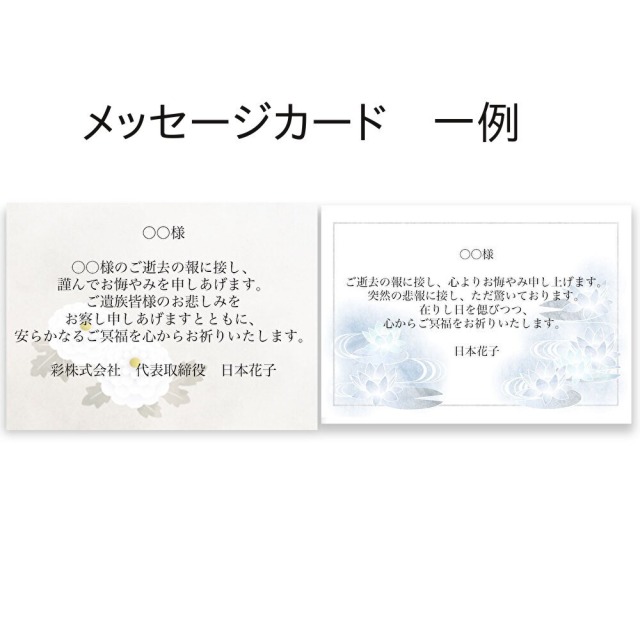メッセージカードや立札はもちろんお悔やみ用をご用意させていただきます。