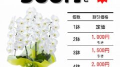 季節にもよりますが大体1か月~1か月半と長持ちするため、長く寄り添うお花としてお供え胡蝶蘭は