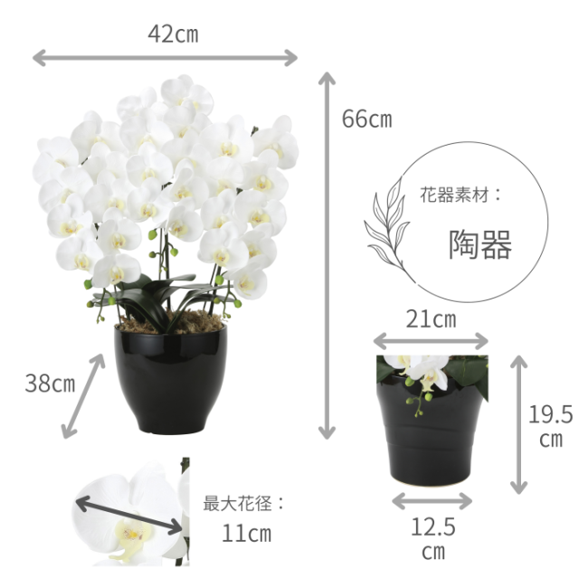 生花と見間違う精巧な美しさのお供え・お悔やみ用の造花胡蝶蘭は置いておくだけで空気清浄効果もある嬉しい商品です。