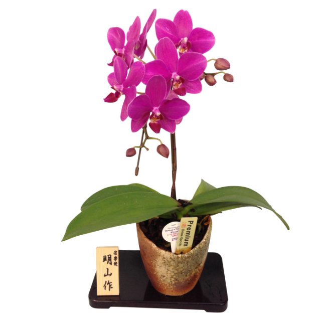 信楽焼鉢にあしらったピンク系ミニ胡蝶蘭