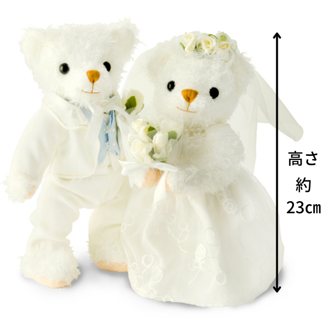 ぬいぐるみ電報は、真っ白なテディベアが純白のドレスとタキシードを着ていて結婚式のお祝いに贈れば驚きの声があがるでしょう。