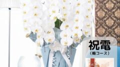 また、祝電(梅コース)とスタンド花1段は専任スタッフがスタンド花を配送・設置・回収まで行いますので安心・安全です!