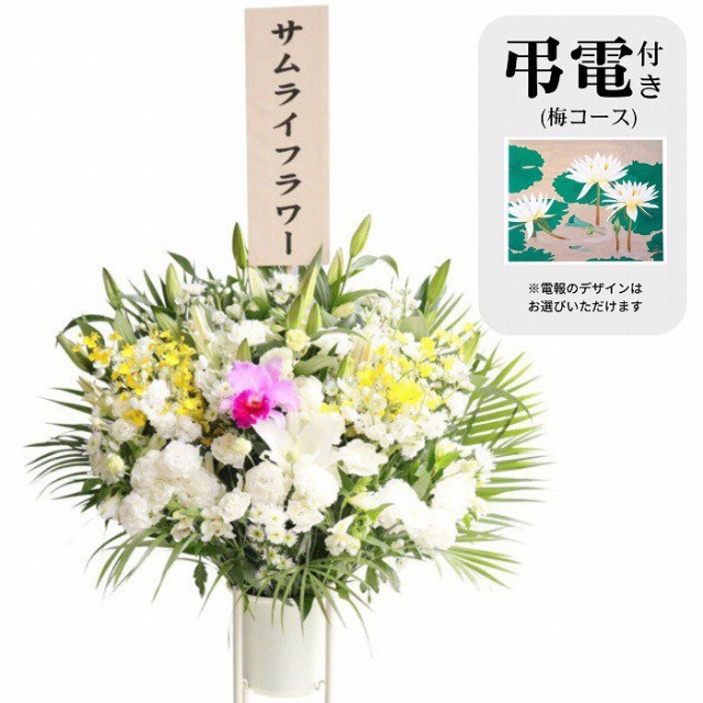 弔電(竹コース)付きのお供えスタンド花