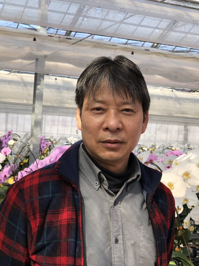生産者の渡辺ですが、胡蝶蘭に対する勤勉な姿勢は勿論のこと、博識で勉強熱心で寛大な人物だと感じます。生産者ではありながら、様々な時事に対する造詣が深く、世間の動向などをキャッチするアンテナを常に持ち合わせている勤勉さを強く感じます。