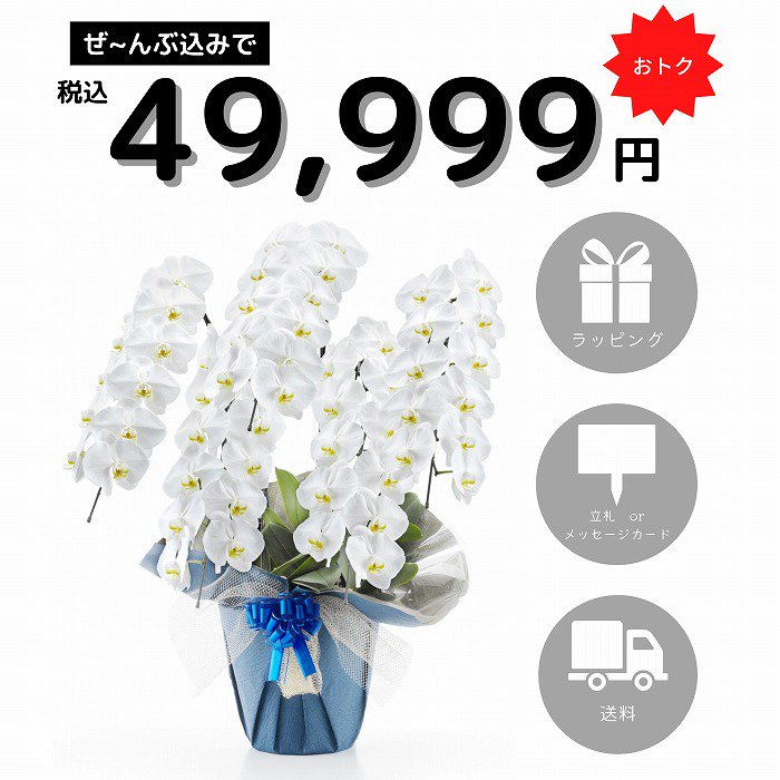 こちらの胡蝶蘭は「胡蝶蘭・送料・税込」でのぽっきり価格で購入ができる大変便利な胡蝶蘭です。