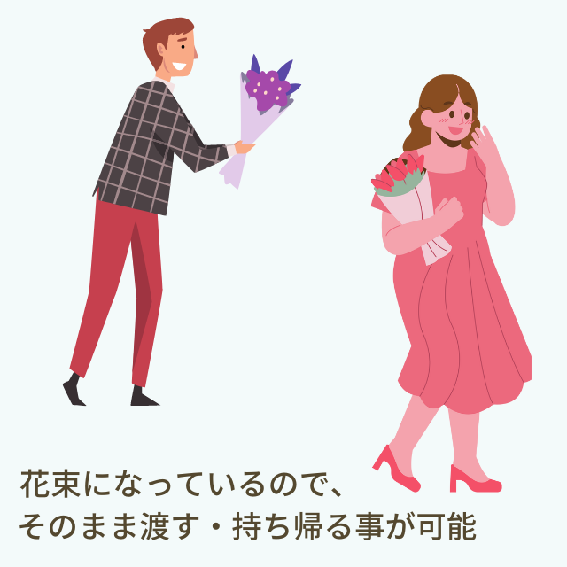 - ラッピングされた花束のスタンドなのでそのまま持ち帰りができる
