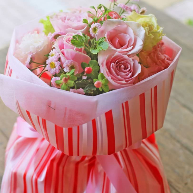 おしゃれでセンスの良い、こちらの便利な花瓶のいらない花束を贈ってみませんか。