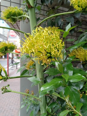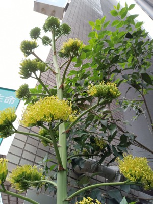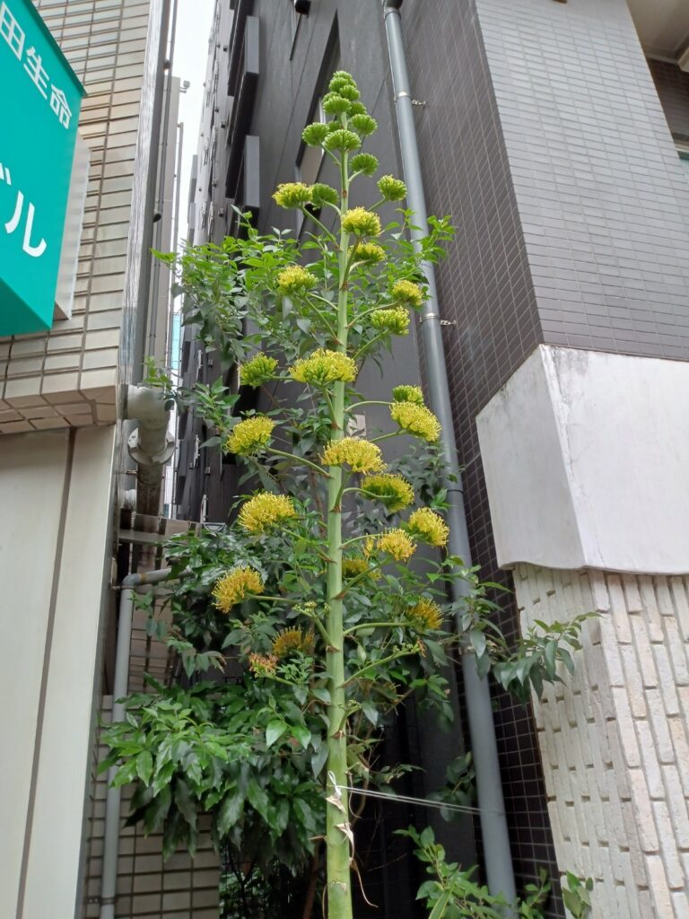 ビルの間に数十年の時を経て開花したリュウゼツラン。奇跡の花です。この場所だけ、とても異空間で、なんとも言えない空気感がありました。