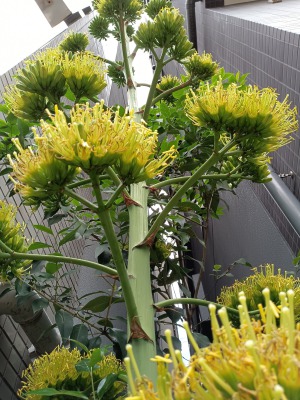 突然開花したリュウゼツラン