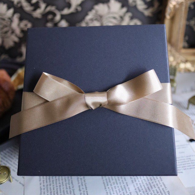 まるでジュエリーが入っていそうな上品なボックスを使用しております。リボンを解いて箱を開けるまでの時間もワクワクドキドキしていただけるよう心を込めて作製しております。