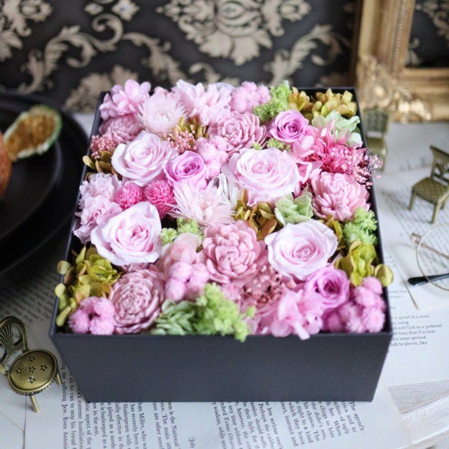 ピンクのプリザーブドフラワーボックス プリザーブドフラワー