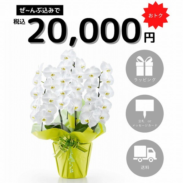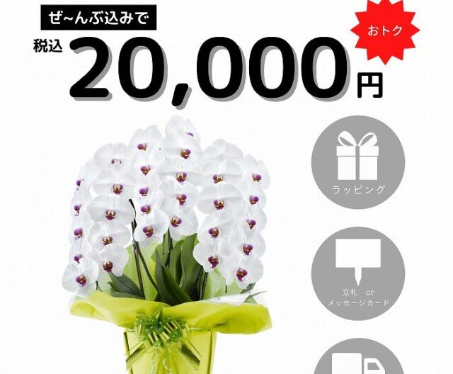 お花代、送料、梱包料、ラッピング、立札またはメッセージカード代など全てコミコミで2万円(税込)の