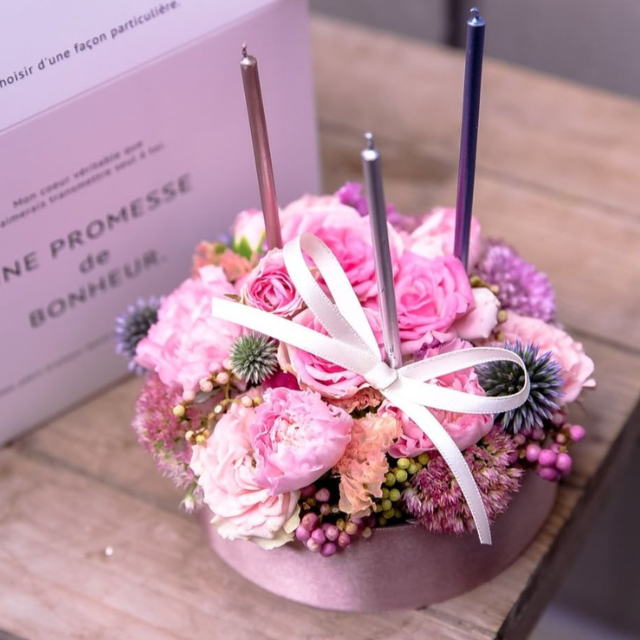 誕生日プレゼント、結婚記念日、退職祝い、卒業祝い、入学祝いなど様々なお祝いシーンにご利用くださいませ。お花に合わせた花器もお付けしておりますのでそのまま飾れます。