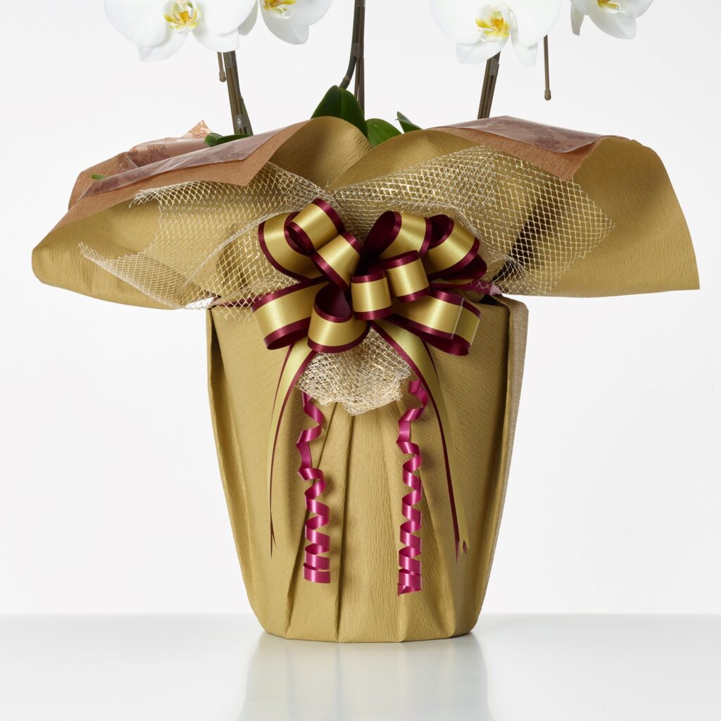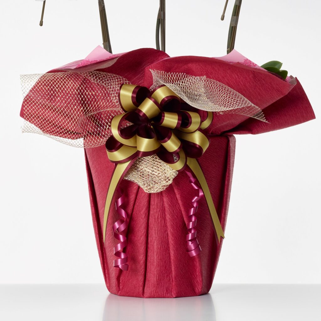サムライフラワーでは、鉢花をはじめとするお花にラッピングをしております。