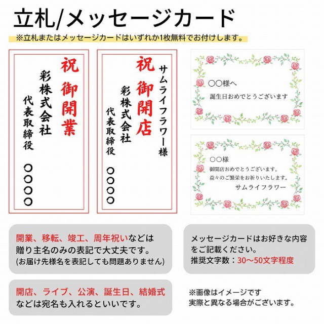 ミニ胡蝶蘭を贈る際に大切なメッセージカードを無料でご用意しております。