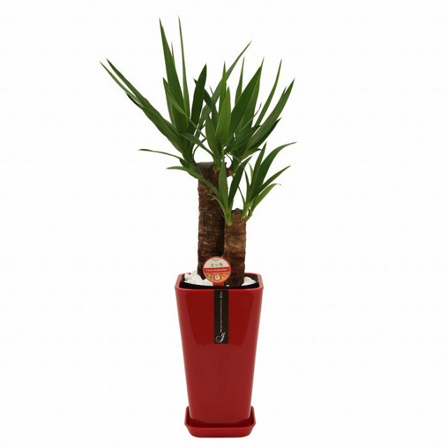 観葉植物、青年の木(ユッカ)はお祝いにおすすめ!おしゃれなカラーポッド赤・受皿付き