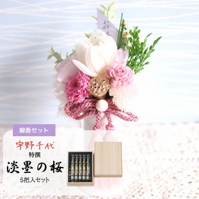 - お供えプリザーブドフラワーとお線香のセットで便利