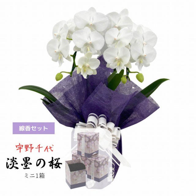 【宇野千代 淡墨の桜】線香ミニサイズ1箱とミニ胡蝶蘭2本立てのここがおすすめ