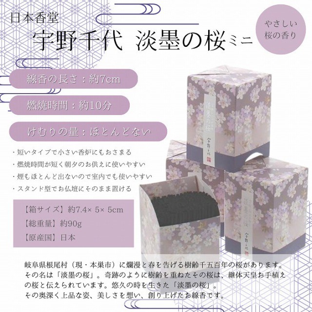 またこちらは「宇野千代 淡墨の桜」お線香ミニサイズ1箱セットです。