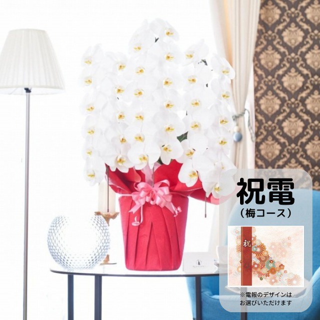 祝電(梅コース)付きの胡蝶蘭3本立て