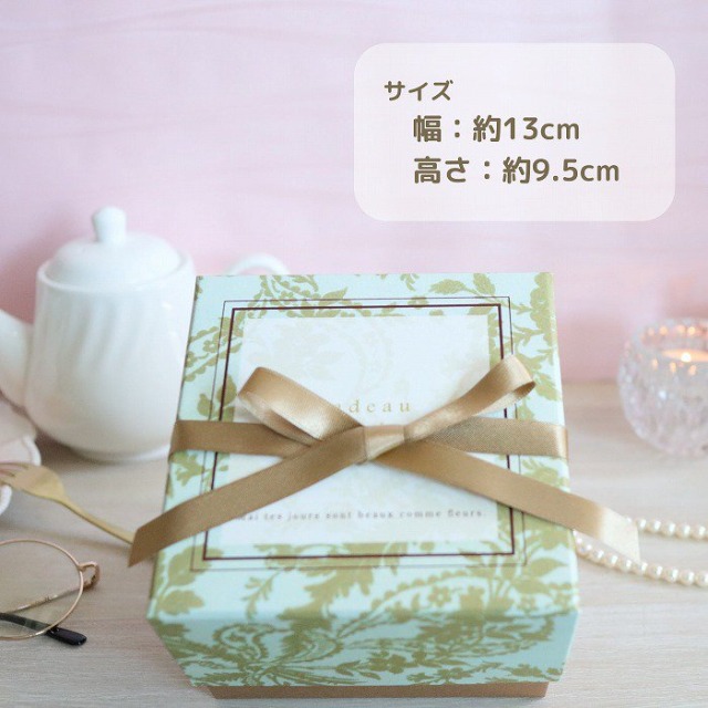 まるでジュエリーが入っていそうな上品なボックスを使用しております。リボンを解いて箱を開けるまでの時間もワクワクドキドキしていただけるよう心を込めて作製しております。