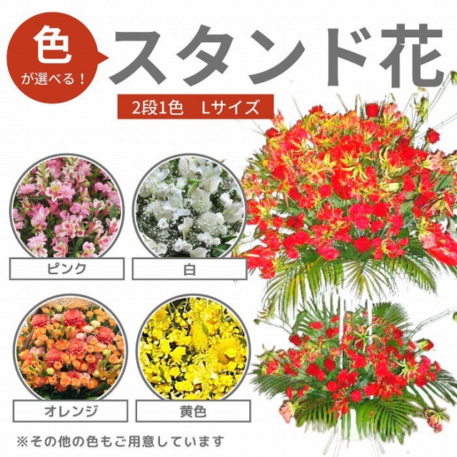 劇場におすすめの花は好きな色が選べるスタンド花2段Lサイズの通販が人気です。