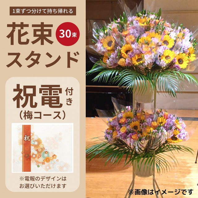 祝電(梅コース)と分けられる花束スタンド30本のここがおすすめ!