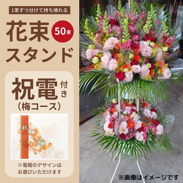 祝電(梅コース)と分けられる花束スタンド50本のここがおすすめ!