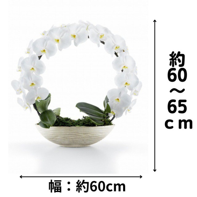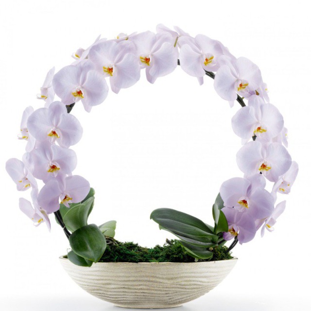 珍しいアーチ状に仕立てた胡蝶蘭はリビングや玄関先、寝室などどんな場所にも飾っていただけます。