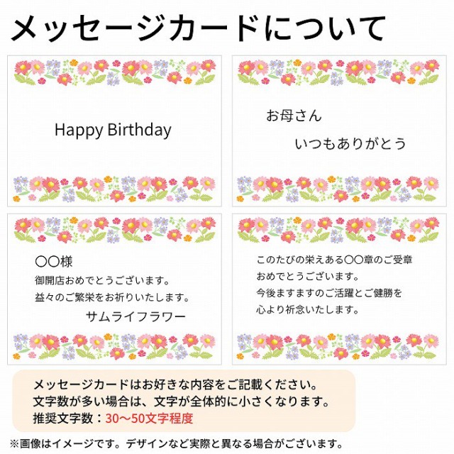 ご希望のお祝いメッセージを記載してお届けいたします。