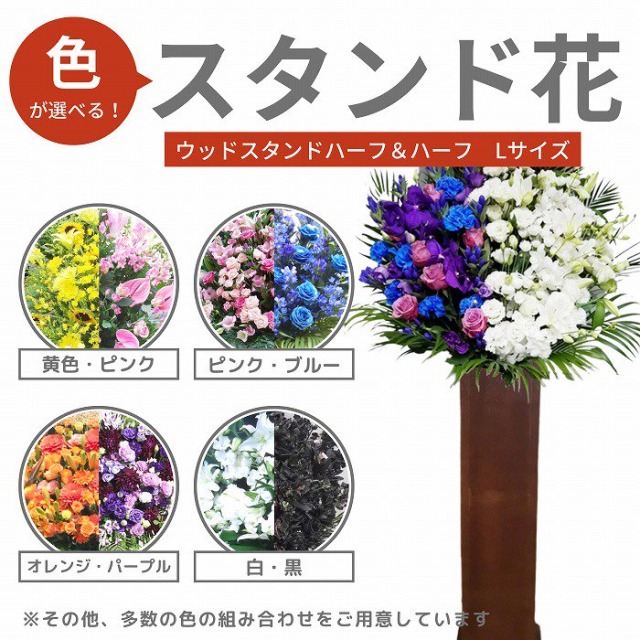 スタンド花も幅広いお色で制作が可能ですので、お好みのお色で仕立てて会場を華やかに彩ってはいかがでしょうか。