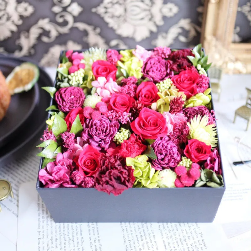 このように加工されたプリザーブドフラワーは、華やかで長く飾っておける上に、生花ではないため水やりも必要ありません。