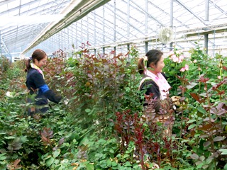 熊谷園芸では朝・夕に1日に一人約、1000本程バラを摘みます。