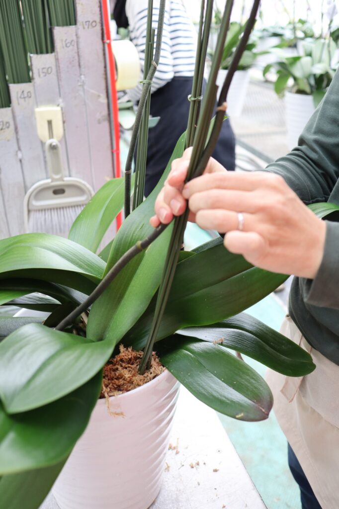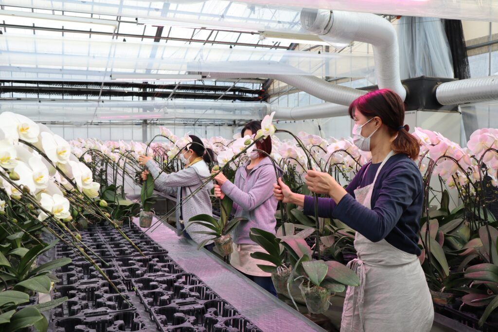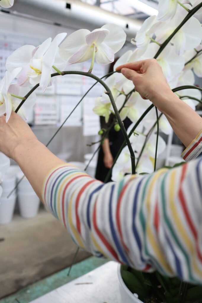 胡蝶蘭は出荷まではとても手がかかるお花だからです。いくつもの作業工程があり全て人の手でやらないといけないからです。