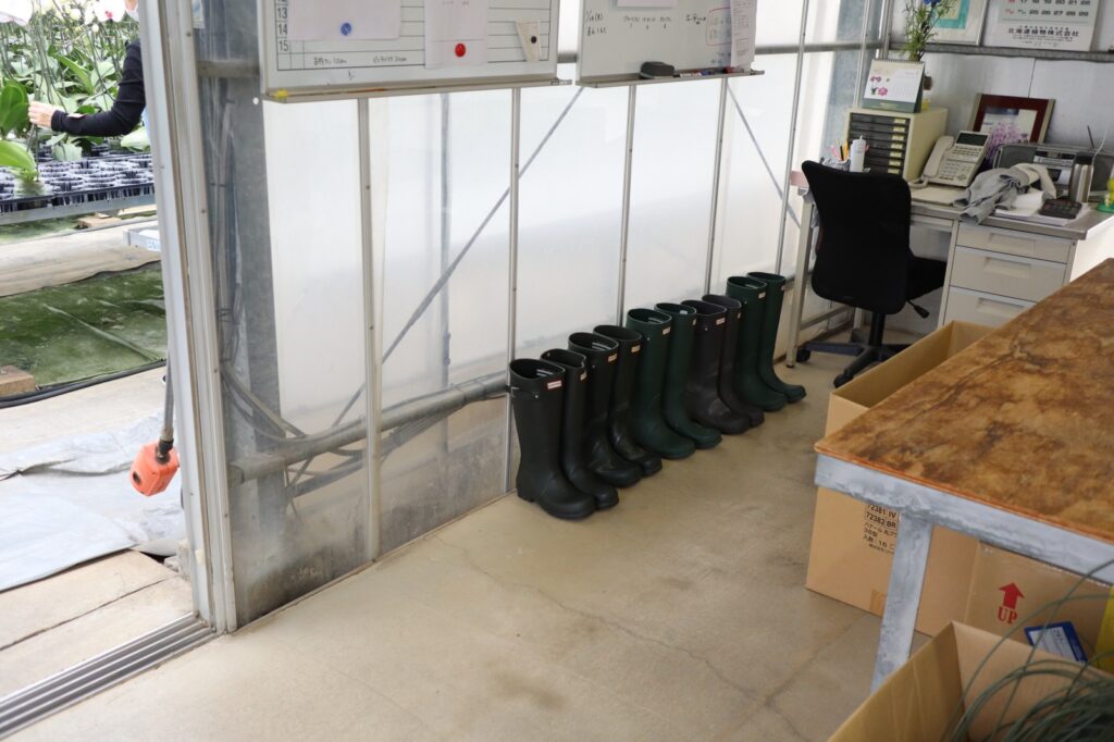 これは長靴ですが栗田が手掛ける胡蝶蘭がまさにこのような姿勢で、立派というだけでは語彙力が問われてしまいますが、ただこの画像からどういう農園主で、どういう信念をもってというのが少し伝わるのではないかと思うのです。通常、長靴なんて概ね脱ぎ散らかしてるのが一般的ではないでしょうか・・。