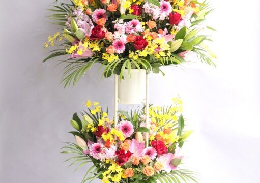 スタンド花のご紹介 豪華なスタンド花2段は開店・開業祝いの定番!スタンド花2段でお祝い花を贈りましょう。