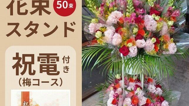 スタンド花のご紹介 ブーケスタンド花30本(ラッピング付)は祝電(フラワー電報)とセットでお得で便利なお祝い花