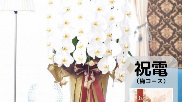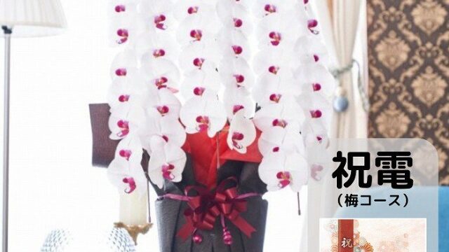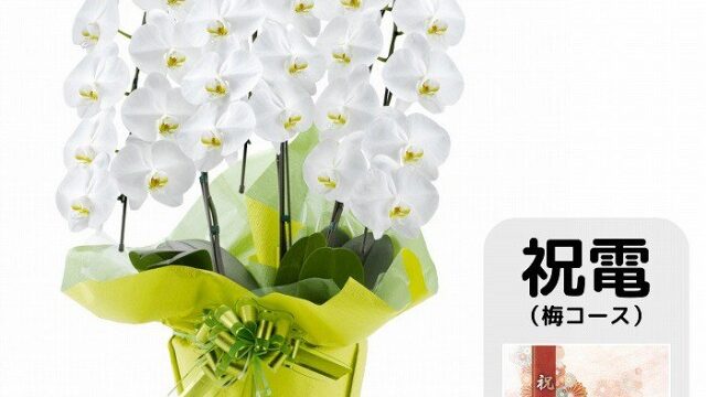 選べるお祝い電報(フラワー電報)と胡蝶蘭7本立てセット大切な会長就任祝いに人気の胡蝶蘭。お祝い花と共にお祝いのメッセージを伝えるには祝電(松コース)とセットの胡蝶蘭7本立てがおすすめです。祝電(松コース)と胡蝶蘭7本立てのセットはお花とお祝...